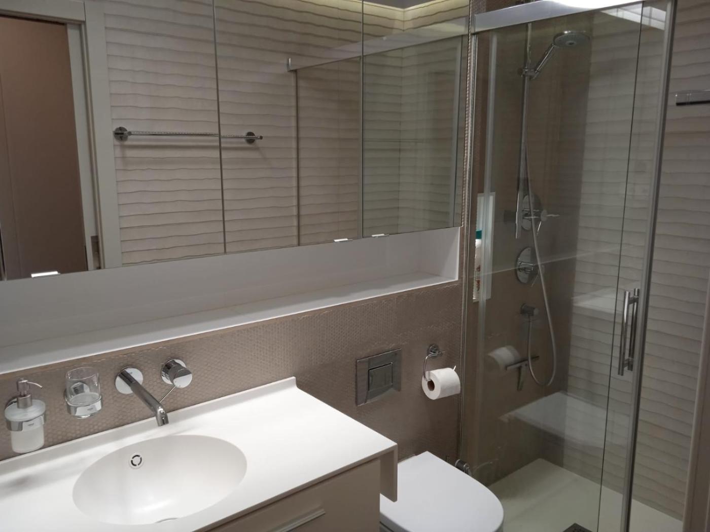 Habitación Doble Deluxe con vistas al mar. Featuring free toiletries, this double room includes a private bathroom with a shower and a hairdryer. In the well-fitted kitchen, guests will find a stovetop, a refrigerator, a dishwasher and kitchenware. The spacious air-conditioned double room features a flat-screen TV, a washing machine, a private entrance, soundproof walls as well as sea views. The unit has 3 beds.