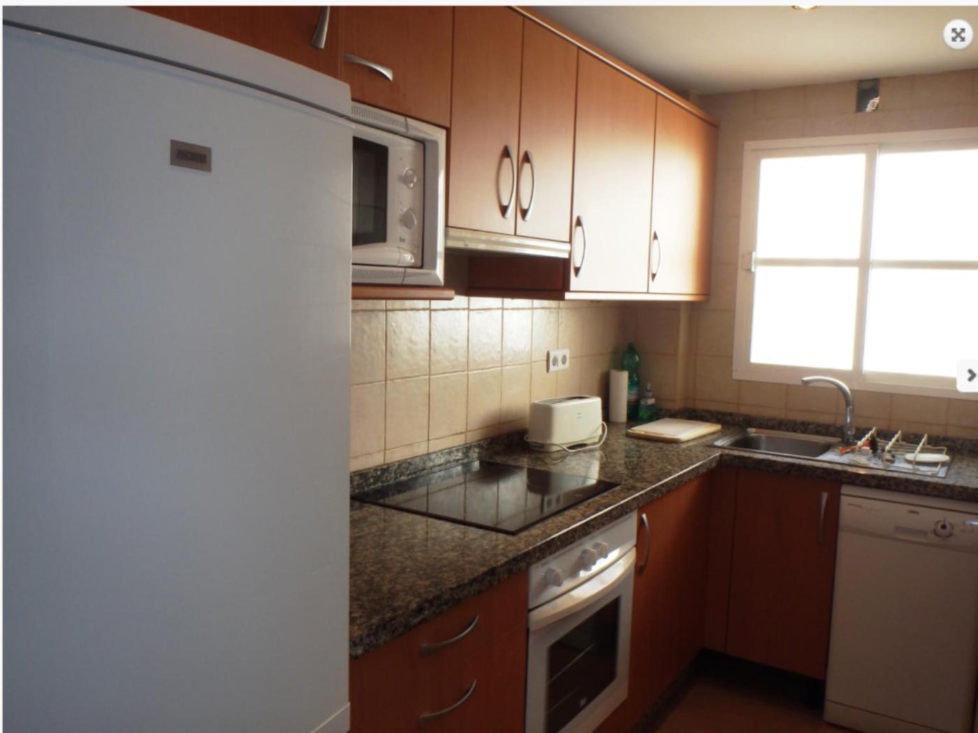 El apartamento tiene 2 dormitorios, 2 baños, ropa de cama, toallas, TV de pantalla plana, zona de comedor, cocina totalmente equipada y terraza con vistas al mar.
